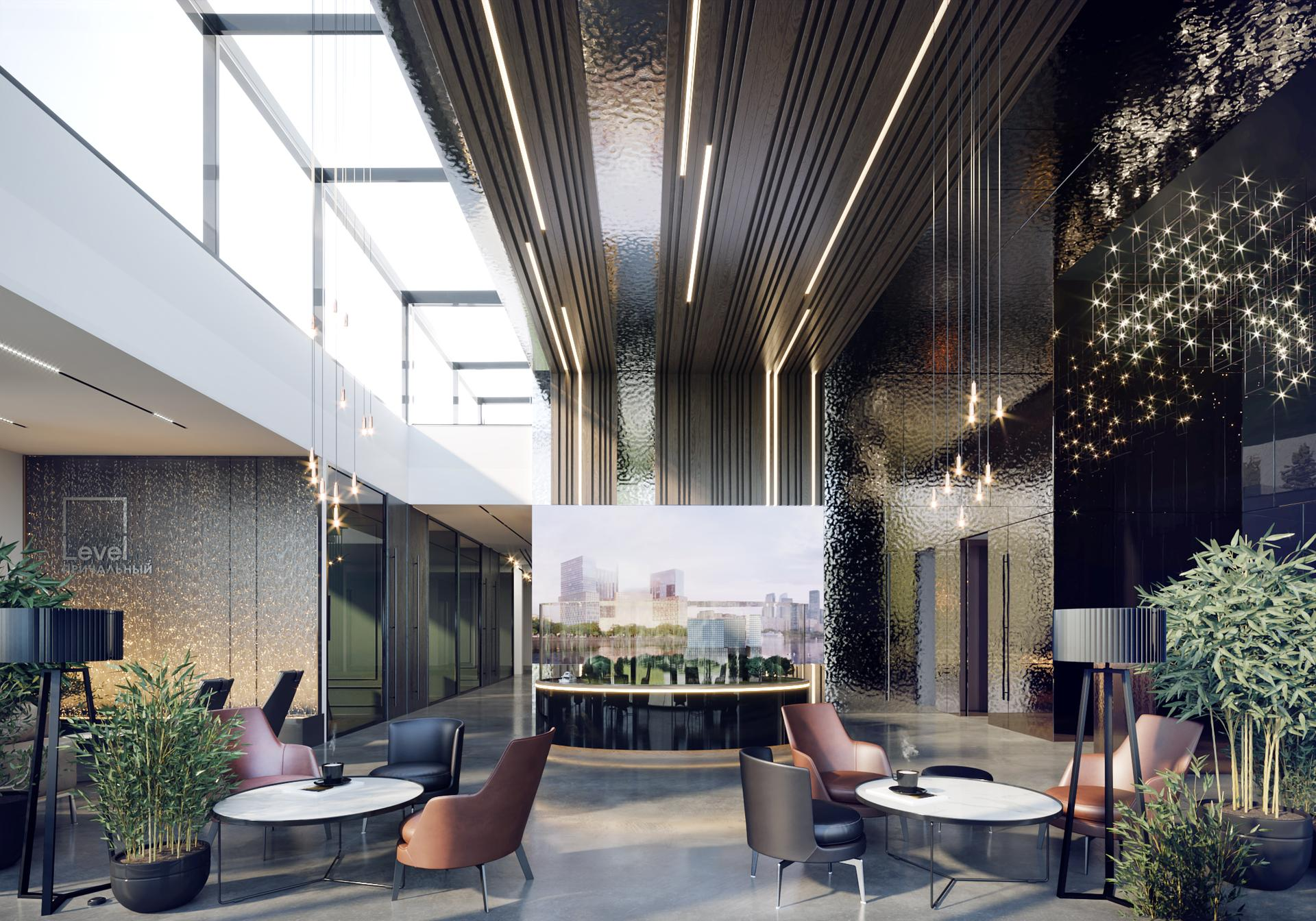Неповторимый облик Level Причальный создан совместно с архитектурным бюро «Остоженка». По задумке архитекторов, проект словно соединяет в себе две стихии: монументальное, «земное» основание и легкий, «воздушный» верх.