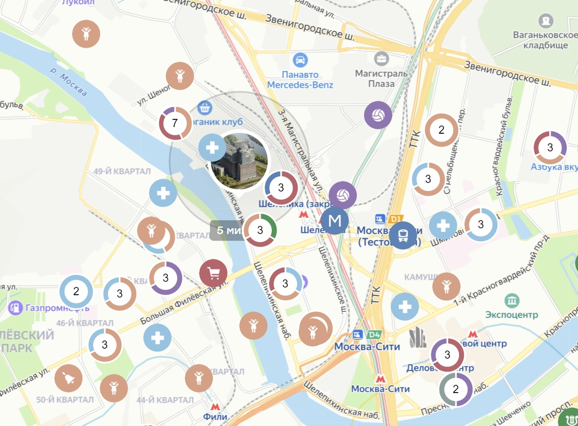 В пешей доступности — станции МЦК и БКЛ «Шелепиха». До ТТК можно доехать за 5 минут на автомобиле, а до Москва-Сити — всего за 3 минуты на метро.
