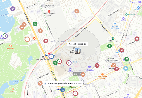 Левел Войковская находится в престижном северном районе Москвы. За 11 мин. пешком можно добраться до метро «Войковская», а всего за 7 мин. — до станции МЦК «Балтийская». На автомобиле путь до Садового кольца займёт всего 11 минут, до Кремля — 15 мин.